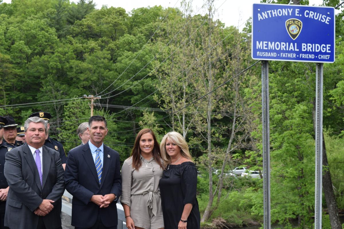 “Tony Cruise was a dedicated police officer, devoted husband, loving father and loyal friend, and we sorely miss him,” said Ulster County Executive Mike Hein. “This bridge, which stands just down the road from where he lived and Christa continues to reside, will remind generations to come of one of Ulster County’s finest public servants we had the privilege of knowing. I want to offer a heartfelt thanks to Christa and Ashley for allowing us to share the memory of this truly remarkable man.”
