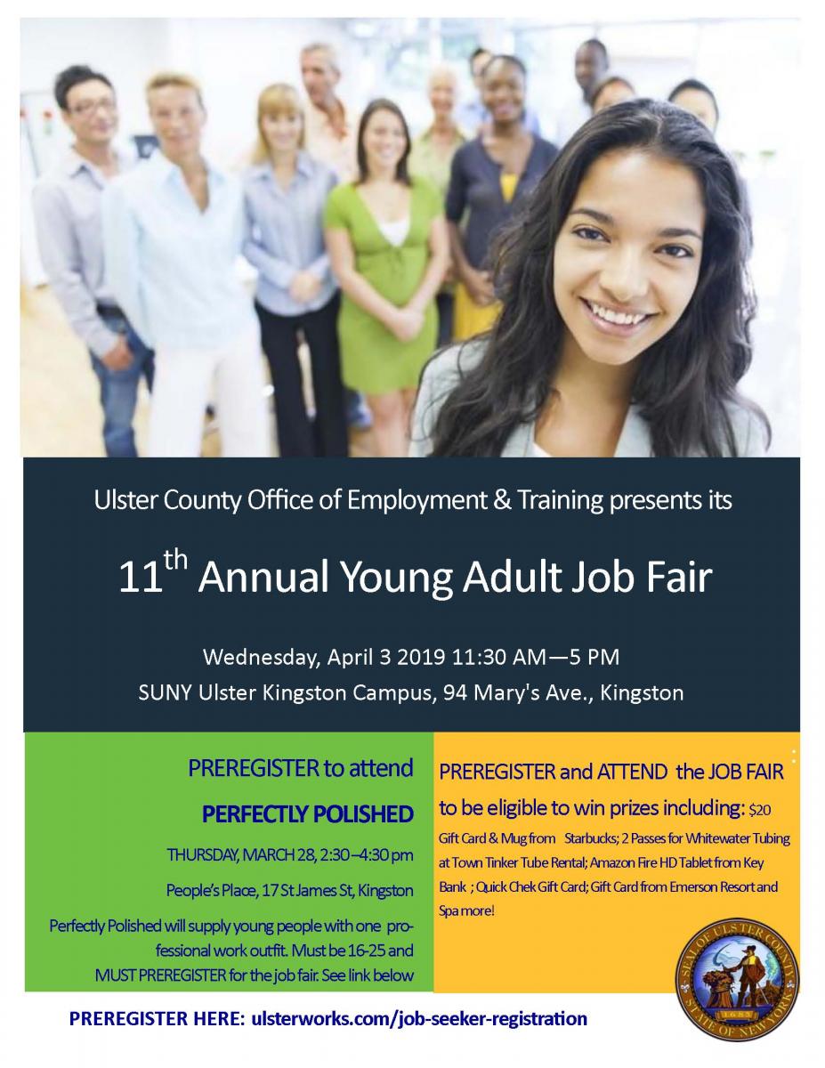 In addition, new this year, the Ulster County Office of Employment and Training in conjunction with People’s Place will be holding an event to prepare to meet the businesses at the Young Adult Job Fair called Perfectly Polished. This is an amazing opportunity for young people ages 16-25 to find the perfect clothes for a summer, part-time or full-time job as well as get their hair cut and styled for FREE! Perfectly Polished is being held on Thursday, March 28 from 2:30—4:30 at People’s Place, 17 Saint James Street, Kingston. To attend, you must be registered for the Young Adult Job Fair.